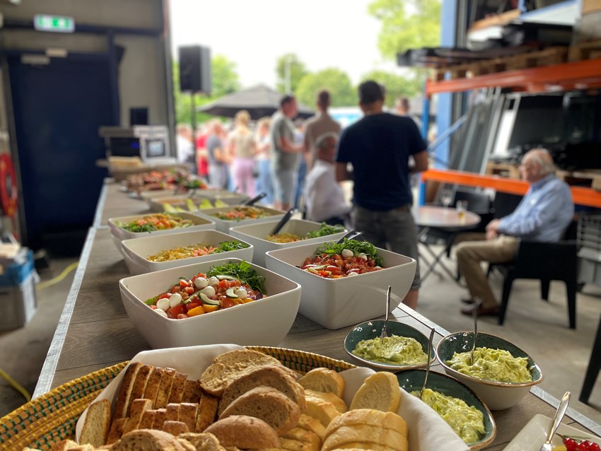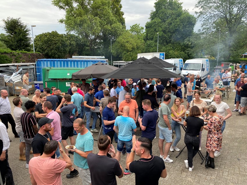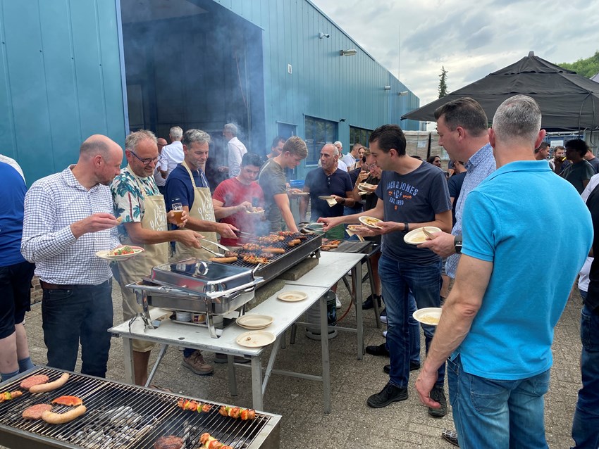 Voordat onze collega's konden gaan genieten van hun welverdiende vakantie, was het eerst tijd om even bij te praten onder het genot van een hapje en drankje. Er zijn immers collega's van andere locaties die we niet dagelijks zien, dus dan is zo'n BBQ een uitgelezen kans. Dankzij Gasterij de Arend uit Winssen ontbrak het ons aan niets en het eten was weer heerlijk!