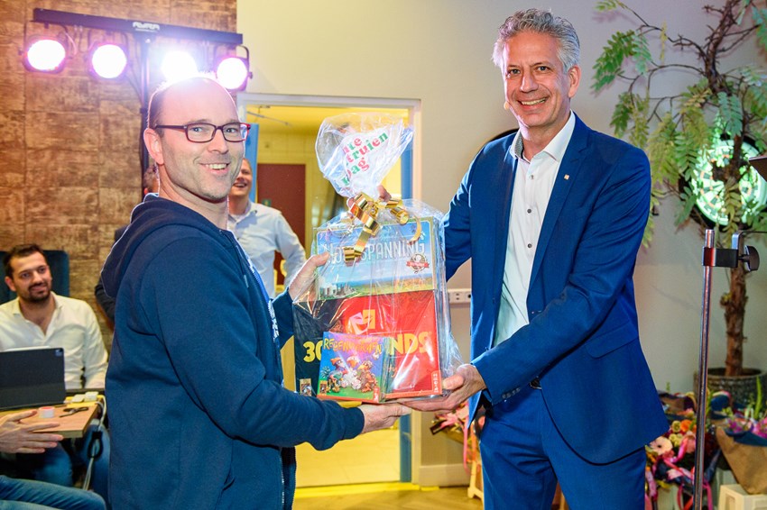 Na het officiƫle gedeelte was het tijd voor de loterij waar weer fantastische prijzen in zaten. Zo werden er onder andere een spiegelreflexcamera, een tv, AirPods en een BBQ verloot! Ook werd de winnaar van onze "foute kersttruien wedstrijd" van eerder die week bekend gemaakt. Floris van der Logt had de meest originele foute kerst outfit voor de dag gehaald en won daarmee een spellenpakket.