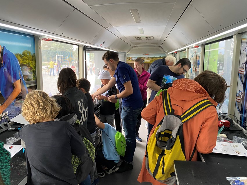 Het was een geweldige dag waar kinderen kennis konden maken met alle facetten die de technische wereld te bieden heeft. Proefjes doen, programmeren, hout bewerken, lassen en natuurlijk waren wij aanwezig met onze eigen Huisman Etech Express! In ons mobiele inspiratie lab konden de kinderen, al dan niet samen met hun begeleider, een elektrotechnische opdracht maken die ze uiteraard mee naar huis mochten nemen.